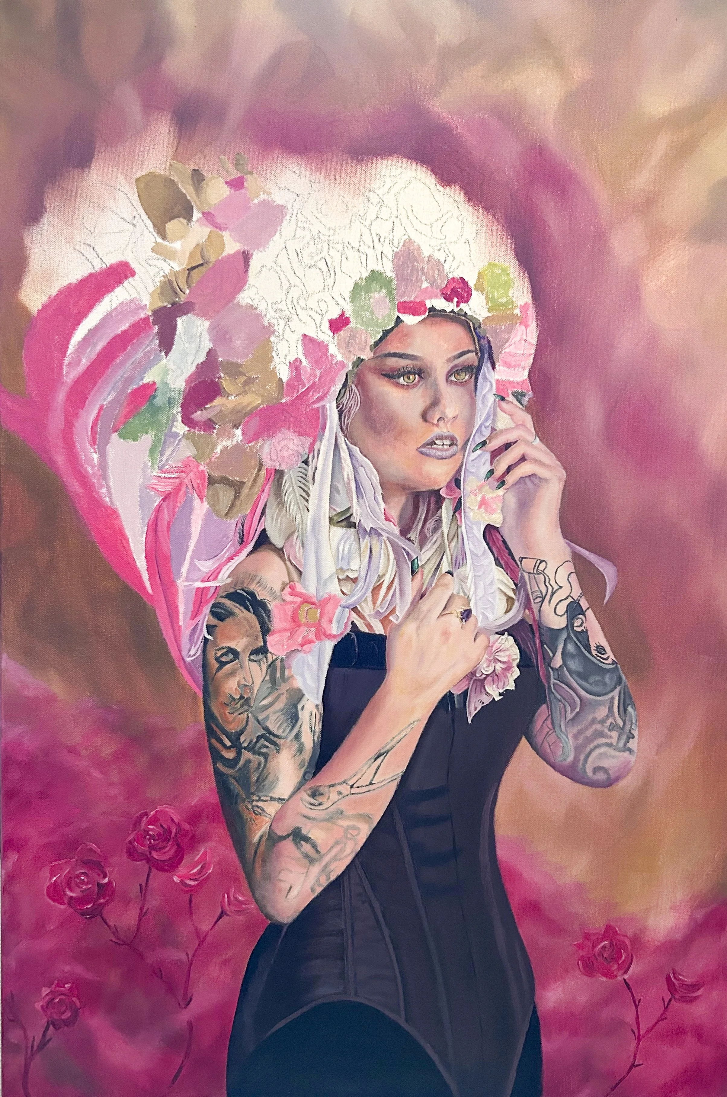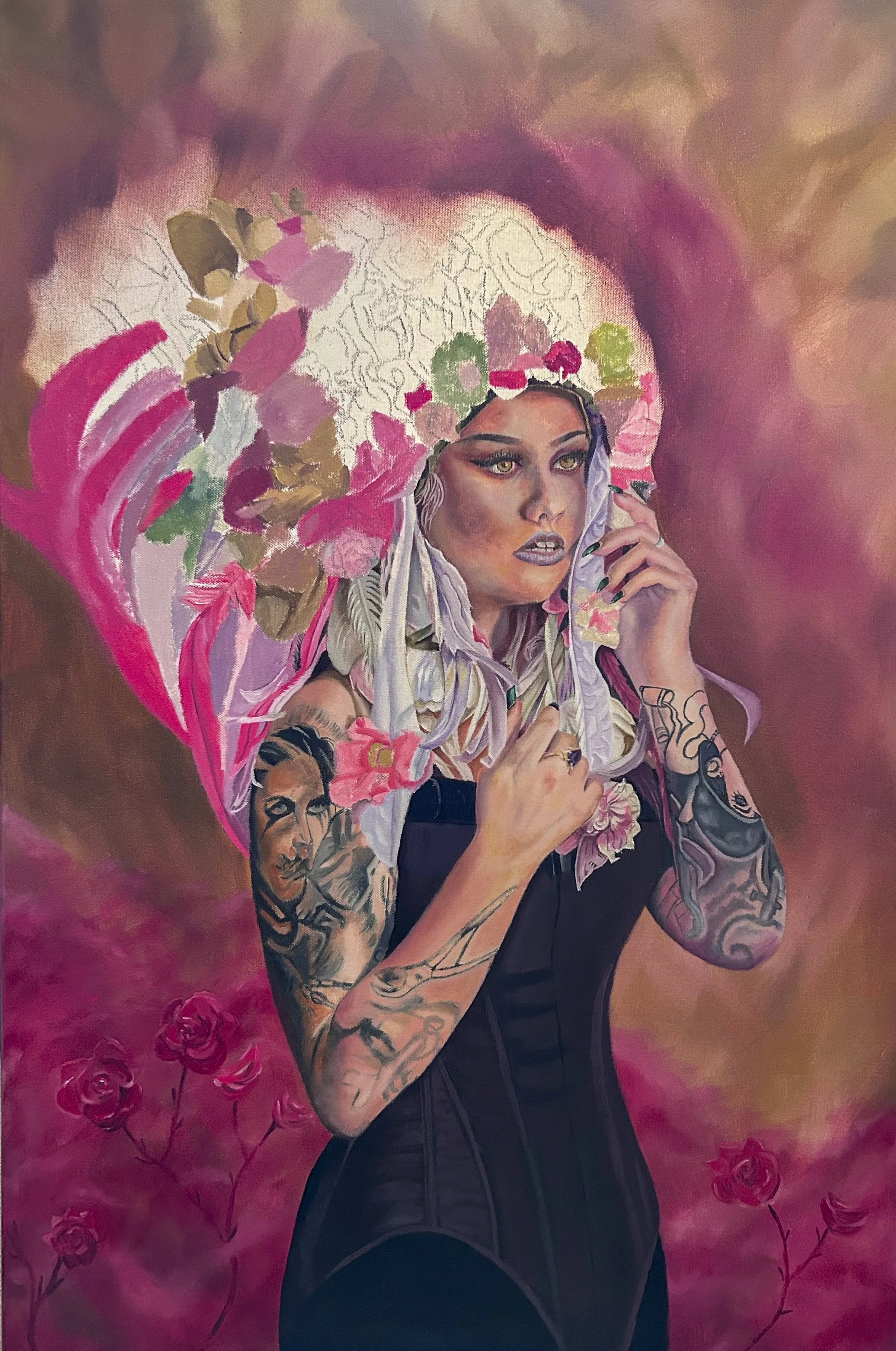 Finally finished my latest oil painting. Girl with flower and feather headdress. 70x50cm oil on canvass.